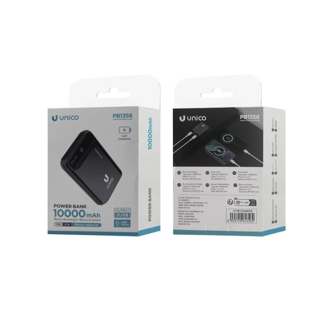 Power bank o mocy 10 000 mA z podwójnym gniazdem USB przeznaczony do ładowania 2 urządzeń jednocześnie z mocą 2,1 A. Można go ładować za pomocą kabla micro USB, a diody LED informują o poziomie naładowania. Lekki i bardzo mały, nadaje się do użytku w podróży. Czarny kolor z lustrzanym wykończeniem sprawia, że jest on wyjątkowy i niepowtarzalny.